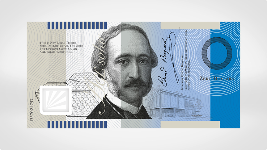 To prove that saving money starts with spending nothing, we created Australia's first $0 note. Real money, on real Polymer stock, worth absolutely zilch… But with AGL, you can get solar installed for $0. Yes, zero dollars!